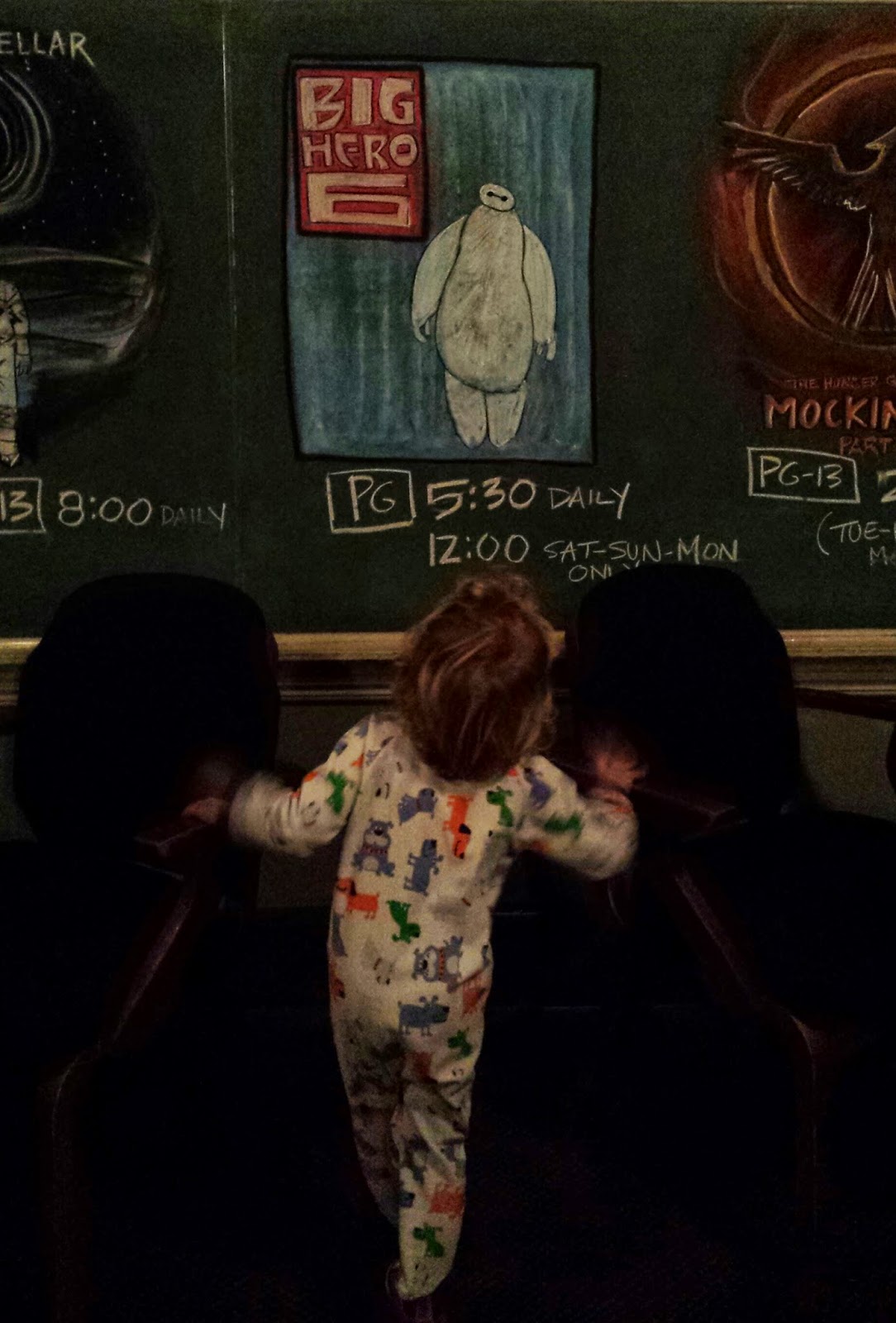 The night before my presentation, JoanMarie and her sister, Gypsy, did some boring public exercise thingie in the park. Meanwhile, Isaiah and I went to an awesome movie at the awesome McMenamins Kennedy School. The Kennedy School used to be an actual school but is now a hotel with its own movie theater. Instead of individual seats, there are couches. And who needs movie posters when you have chalkboards and artists!