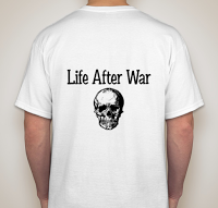 Have you grabbed a T-Shirt yet?Marc and Angie Backstory T-Shirt. Has the book cover on front, with the text: Life After War, on the back above a skull. This is a one time design. By purchasing a shirt, you are supporting an author. Very nice! Thank you for helping to ensure that my voice will keep being heard. This is the first shirt in a collectable series that will be available with each of my new releases. Whenever I put out a book, you can get the matching T-shirt! Isn't that cool?