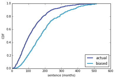 Figure 6 shows biased distributions as seen by hypothetical prisoners serving sentences of 13, 120, and 600 months.