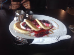 I tried again last Saturday, only visiting a different coffee shop this time, one attached to our local bookstore. The coffee here was fabulous, Foto below. The writing was awesome and I got in 3k in 3 hours which was likely because I managed to attach myself to the only available plug point. (well spotted) low stress environement! Starting off with a nice plate of pancakes certainly helped.