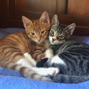 The ginger cat is the sweetest little boy we’ve named Berty, and the gray tiger is his sister, Wednesday – a little stinker (in the best possible way). We hit the jackpot with these two. Both cats are bonded to each other, affectionate with us, friendly with stran...