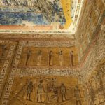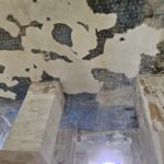 During the European Middle-Ages, the temple was mostly submerged in sand and mud, and people were living in a narrow space between the new ground level and the temple’s ceiling. Since they were using torches and lighting fires, the sign of this occupation is still visible in the form of a black coat of soot on the upper side of the columns and on the ceiling. Amazingly enough, the white paint used for the starred sky that’s typical of a Temple’s ceiling was able to withstand all of that, and is still visible if you look hard enough.