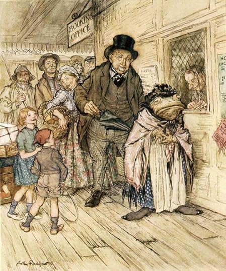 Well, we’ve reached Chapter 8 in the re-reading of The Wind in the Willows (I already mentioned it here and here), and Chapter 8 is where we see Toad’s misadventures reaching a peak of misery: the rascal has been put in prison where he laments his bad fate, he gets into the good graces of the gaoler’s daughter, cross-dresses as a washerwoman and daringly escapes on board of a train. There you have it.