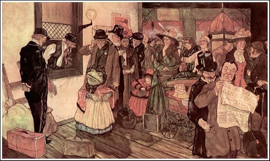 First of all, I’m all for a rascal as a main character but I don’t like the lack of accountability that seems to come with Toad. Grahame seems to think Toad’s imprisonment isn’t fair, and he depicts it as some sort of social injustice, where the accursed amphibian was behaving like a bully and using his money to wreak havoc on the innocent countryside.