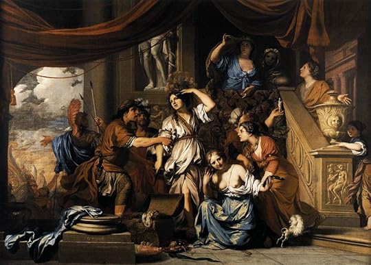 She painted some Sibyls and several allegories of painting, including a favourite challenge of artists throughout all times: the mirror. Particularly beautiful to me is a Cleopatra dropping a pearl into a cup.