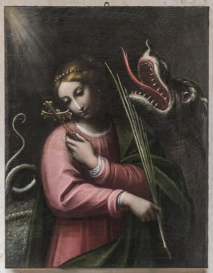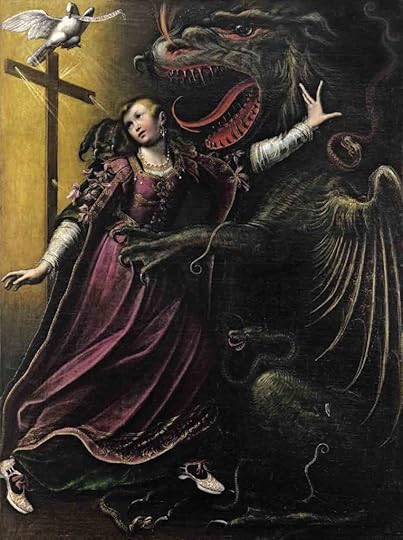 There’s a subtle element of resistance in the choice of this topic, and the same delicate expression of self can be seen in other portraits of contemporary female saints. My favourite painting of hers of course has to be a more visionary one: an extraordinary Saint Marguerite of Antiochia with the dragon that often gets overlooked in favour of more traditional subjects and compositions.