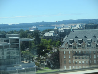 At Victoria, I didn't have scones or need the "tearoom experience" as I tried to tell the restaurant servers--after all, I wrote the book on it! (But I did enjoy cool, creamy homemade gelato and iced tea, found at a small indoor shop on a corner while strolling on the streets and talking to an elderly couple from the UK whom made me feel at home.) And, at the popular Fairmont tearoom on the island. I savored two cups of white tea (it was calming and refreshing), a garden salad with heirloom tomatoes drizzled with an olive oil and vinegar dressing. Not to forget the semi-adventurous boat tour of The Gorge. Note to self: Go on whale tour next time and experience swells and sea life. Funny, I was hoping for a few waves and choppy water but none happened--smooth sailing as was the flight to and from the island. (This surprised me since it was my fear to take the small CRJ700 but it was a nice flight, no cloud cover.) We did see one sea creature, a few swimmers... the history of the water inlet was fascinating as was the guide, much like trying a new type of tea. S