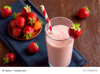 Super Strawberry Smoothie1 cup strawberries, fresh, sliced ¼ cup pear, chopped ½ banana, fresh 5 small ice cubes ½ cup low-fat organic milk 1/2 cup all-natural plain Greek yogurt ½ teaspoon pure vanilla extract