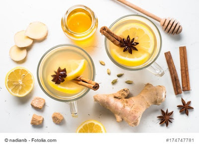 Bring water, ginger root, and lemon slices to a boil for 1 or 2 minutes. Remove from heat, steep 10 minutes, strain. Stir in honey and lemon juice. You can also add apple peel, a piece of onion, and one or two tablespoons of chamomile.