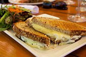 Gourmet Grilled Cheese4-6 slices Jarlsberg (premium brand)2-4 slices sharp cheddar cheese (premium brand)4 slices whole wheat sourdough bread (or light rye bread)3-4 fresh Roma tomatoes, sliced2-3 tablespoons European style butter, unsaltedPreheat a large frying pan over medium heat with a bit of butter. Place bread slices in pan and cover each with butter. Top two slices with cheese(s), tomatoes. Let cheese melt. Top with the other bread slices. Cook sandwich in pan until golden brown on both sides. Slice in half or diagonal shape. Add a side of green salad with olive oil and red wine vinegar, dried cranberries and nuts. Serves two.