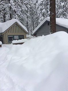 Then, newspaper headlines read: “10 Plus Feet of snow Bury California’s Sierra Nevada as Heavy Rain Knocks down Drought”… Worse, for days California back-to-back heavy rain caused flooding and mudslides, while feet of snow buried the Sierra Nevada. I sense the fun is over and challenges were beginning as my sibling purchased a snow blower.January 15Then, one more storm slams the sierras. Tourists are happy and hotels are filled. It is a real winter like mountain folks said we used to get. The snow piles up on the deck, and berms pile on fences so I can no longer see neighbors due to the snow fortress. With a mix of rain and snow, shoveling snow is no longer easy to do. Snow is building up on the rooftops and ice dams are dripping water at the doorsteps making it slippery to walk and taking the dog out is now a dangerous task late at night and early in the morning. Dirt and debris in the snow on the deck is an eyesore.