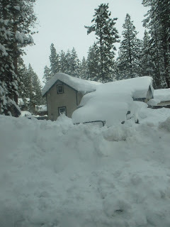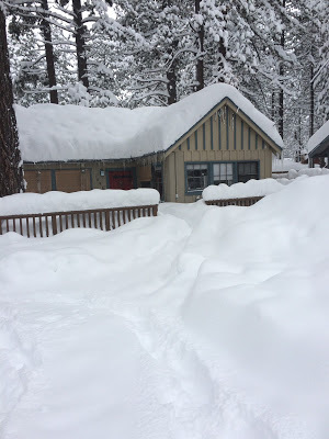 My words worked. Decent trails were dug out by a hardworking snow boarder. I read about these odd warm temperatures paired with snow that are increasing flooding threat in California. Mudslides and rockslides close two major highways from Nevada to Lake Tahoe and restrict travel on US Interstate 80 over the Sierra Nevada near Truckee. Authorities warn residents on Lake Tahoe's north shore to stay in their homes due to the threat of avalanches after nearly three feet of new snow hit the mountains overnight. I think, “Is this really happening?”