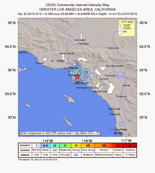 April 30, widely felt shallow minor eqGreater LA, near Long Beach--near