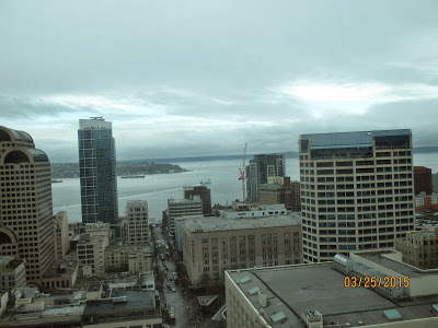 As a native Californian who has traveled to Canada and most of our 50 states, I'm all too aware of our mega drought in the Sierra Nevada and how it's affecting our water supply, price of crops, watering lawns--and my sense of adventure happiness. Exploring in Canada on March 24, I got to escape reality and savor water from morning till night. In Washington and Canada when I visited cafes to restaurants, it was not asked by servers: "Do you want a glass of water?" And I could sense their thoughts: "Do you really need it?" And refills for tea? Water in B.C. was plentiful in showers, bathtubs, pools, hot tubs, eateries, and tea rooms, the skies, and environment. I was in Water world and I loved it...Waking up in B.C... At home each day I awaken to three sweet but demanding fur kids. I am nestled amid pine trees (and a receding beach at Lake Tahoe a few blocks away). In every room of the cabin each window I look out of boasts towering trees (minus one that fell on the cabin last December). On Sunday last month it was a breath of fresh air to open my eyes to a solo bed with a city view and water. This corner room on the 24th floor boasted a balcony which I did learn to savor. Most of the time I was in the room the door was open and fresh air and space was awesome to my senses.