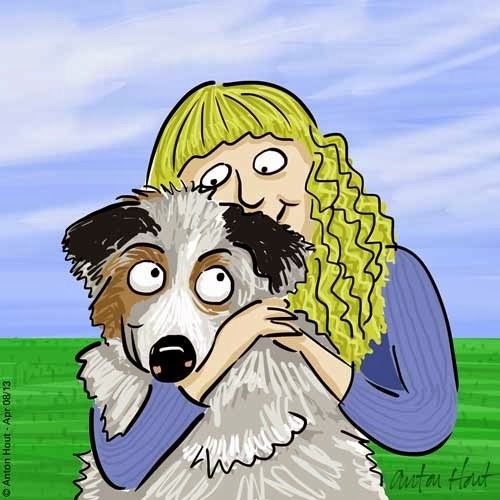 Art by michaelleu.com in my cabinToday, my boys--one young Aussie, one older but young in spirit Brittany, got their walk--a long walk, long drive and they are happy and balanced. Perhaps, you, like me, need that exercise fix every day to feel your best mind and body. And tomorrow I will smile because I will get all I need!