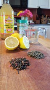 Steep tea in just-boiled water. In a small bowl, mix together honey, vinegar, and lemon juice. Remove tea from stove and mix together all ingredients. Allow mixture to cool off for a couple minutes before applying small amount to your forehead, cheeks, chin, and neck. Leave on for about 5 -10 minutes. Rinse with cool water and pat dry with a clean towel. Follow with a moisturizer. Use this recipe twice a week for a rosy glow.