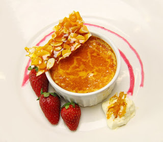 In a bowl combine half and half. Add sugar, egg yolks, and pumpkin slowly into half and half, stir well. Add pumpkin spice and vanilla. Pour custard mixture into ramekins. Sprinkle tops with nutmeg. Place into baking dish, add half with water. Bake at 350 degrees for about 30 to 40 minutes or until custard is firm to touch. Do not over bake. Serve warm or cold. Garnish with whipped cream, a dash of cinnamon or ginger, and sprigs of thyme. *You can you lemon grass or even saffron and nutmeg with an egg custard. (Recipe in the Healing Powers of Herbs and Spices.