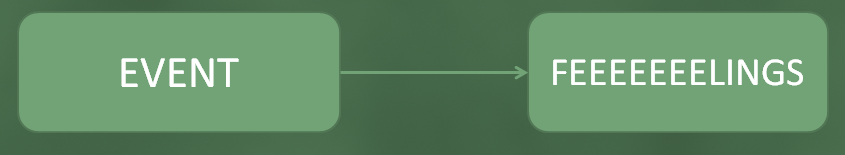 And of course, it's not a linear process, right? Feelings aren't just an end result. Feelings drive behavior, and behavior leads to more events, and more thoughts. Like this: