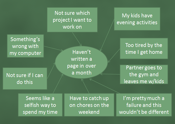 Then we'd build a model of what's causing the block, just like in that diagram. But again, for an individual person, it would be more specific. We'd think of as many causes, no matter how big or small, and write them around the problem.