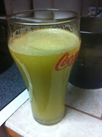 It just tasted like a Golden Delicious Apple. Those 6 apples made 2 cups like the one pictured above. So me and my husband was able to have our own glasses. It tasted fine drinking it but now a bit after I am a little queasy in the tummy now. But all in all I say it is a success!