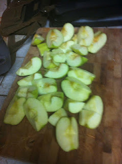 I didn't know what to use first so I picked Golden Delicious Apples!!! Yummy Apples!!! This is 6 apples chopped and de-seeded.