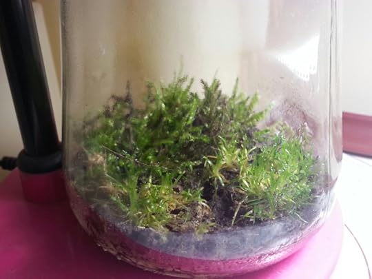 Irish moss in the front, random moss growing in yard toward back. Terrariums are fascinating to me. I love the earth, the green, the self-contained little life they have.