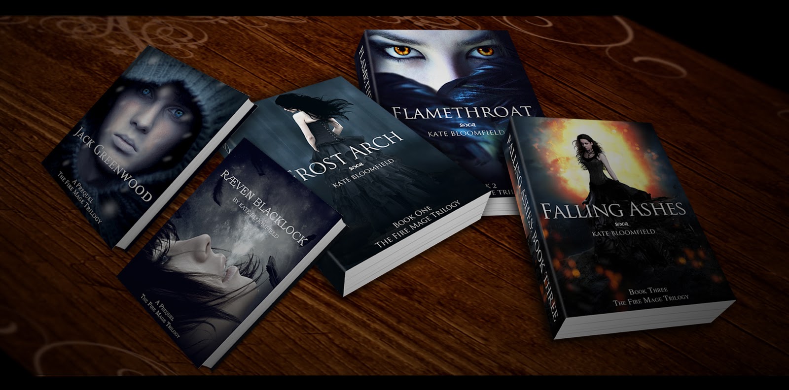 Frost Arch (Book 1: The Fire Mage Trilogy) (Amazon price $1.99USD)Jack Greenwood (Prequel: The Fire Mage Trilogy) Free Short Story [BONUS CONTENT!]Flamethroat (Book 2: The Fire Mage Trilogy) (Amazon price $2.99USD)Raeven Blacklock (Prequel: The Fire Mage Trilogy) Free Short Story [BONUS CONTENT!]Falling Ashes (Book 3: The Fire Mage Trilogy) (Amazon price ($3.99USD)