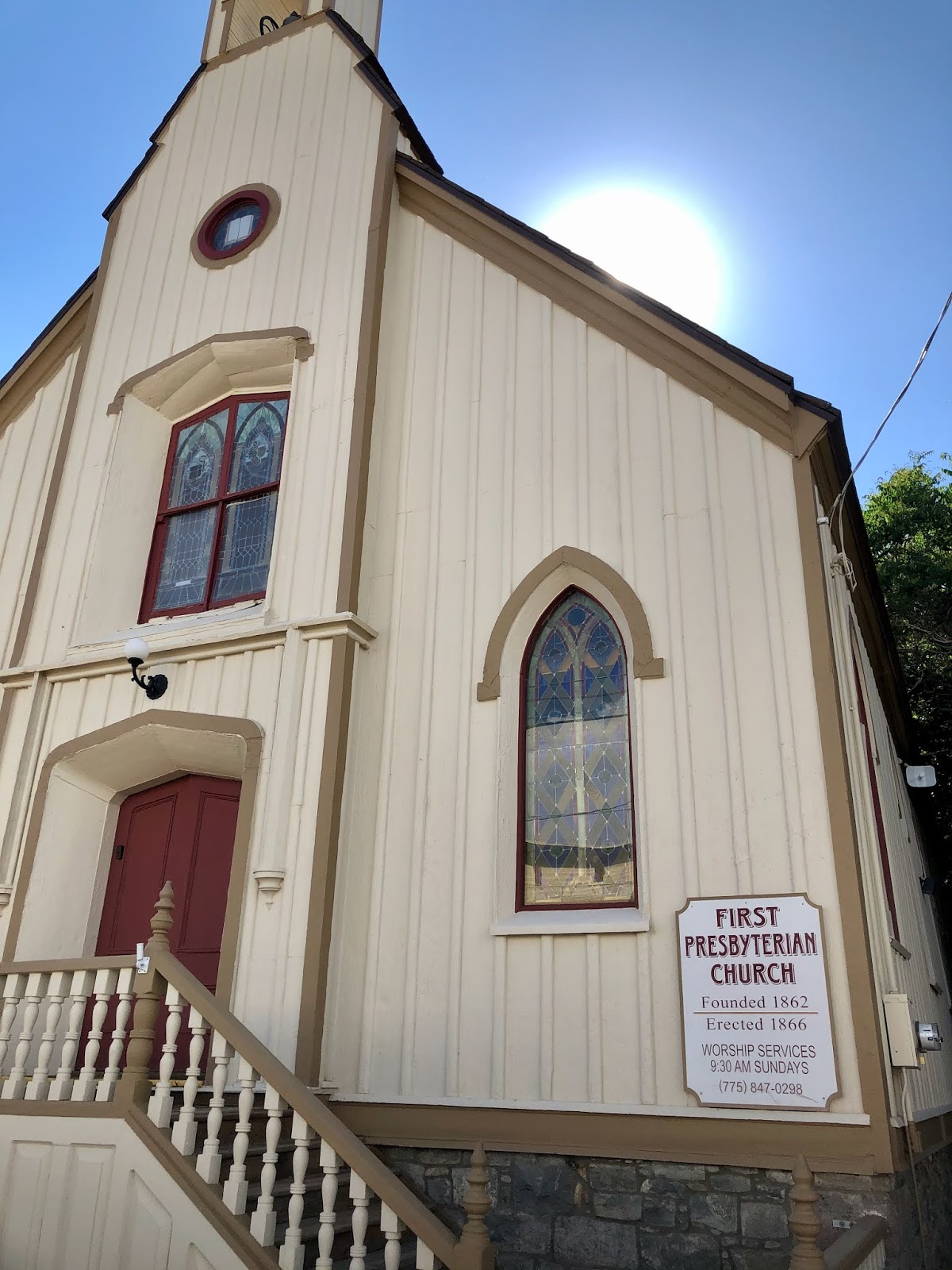 Photographs: Territorial Enterprise building, Fourth Ward School, Piper's Opera House, First Presbyterian Church.