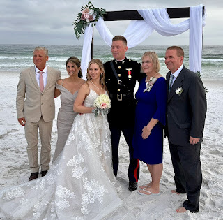 I don't normally go barefoot while wearing a suit, but I did just that on Saturday when I married off my son, Matthew, on a beach. Along with my in-laws, Ken and Michelle Miller; daughter-in-law, Mikayla; wife, Cheryl (all pictured); and many guests, I helped turn Navarre Beach, Florida, into a wedding chapel. Many blessings to the newlyweds as they begin their new lives.
