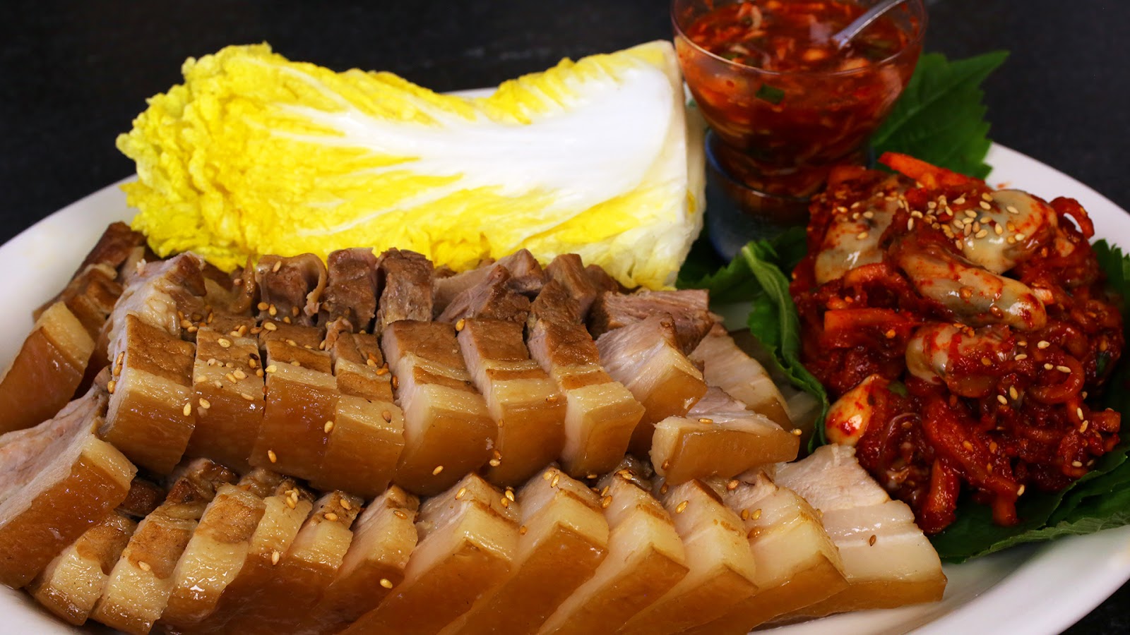 Bo Ssam is made with a cut of fresh pork called Pork Belly. This is what we make bacon out of. Super fatty and yummy! The dish is great for a party because it is served as a cold meat platter. The word Ssam in Korean means “wrapped”. When served the sliced pork is wrapped in a lettuce leaf with a little dab of dipping sauce and popped into your mouth. What even makes it more special is to add a shucked oyster if you like. Totally amazing!