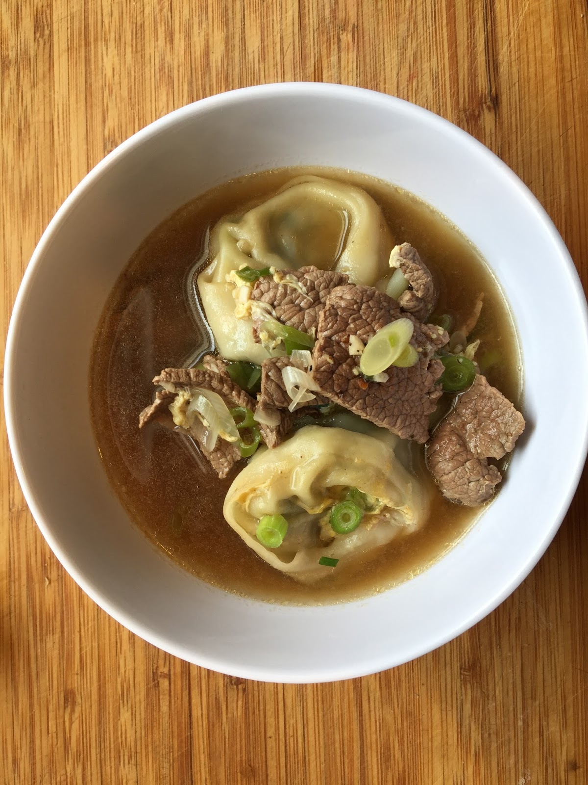 I was inspired to make Mandu Guk during that amazing snow storm we had in March. A great day to be homebound baking banana bread and cooking up some Guk!! Mandu Guk is a lovely beef broth made with garlic, brisket or sirloin and of course Mandu, Korean