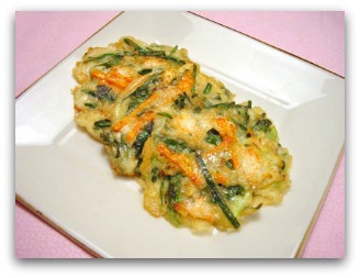 Jeon (pancake) can be prepared as one large pancake to share or tiny bite sized medallions. Usually served as a snack with beer or as a side dish (Banchan).One of my favorite memories of eating Jeon was on our Korea 2012 trip. We arrived at a small roadside restaurant that served only Jeon. The placed was filled with boisterous families enjoying beer and Jeon. They were so surprised and delighted to see this huge crowd of Americans descend upon their local Jeon hot spot! The fathers at one table were pretty much three sheets to the wind and kept toasting us over and over again! We all sat at a traditional low table on the floor and enjoyed an amazing time and meal.We enjoyed three types of Jeon. A large Gamjajeon (Potato Pancake) was served. So different than a crispy shredded potato pancake that we are accustomed to, served with sour cream and apple sauce. The Gamjajeon are made with a raw potato puree and scallions and sauted till golden on each side. They are so chewy and gooey at the same time. We were then served Pajeon (Scallion Pancake). It was divine. Loaded with whole scallions and a small amount of a flour and egg batter. These are also sauted till golden brown. Last but not least, Haemul-pajeon, Seafoo Scallion Pancake. Super yummy and loaded withsquid and shrimp. This is one of my favorites and you will see this pancake served at almost any Korean restaurant in the U.S.A. As I mentioned before the Jeon is served with a soy sauce and vinegar dipping sauce.Any vegetable such as zucchini that is coated in flour and dipped in egg is considered a pancake in Korea. I would say close to every meal we ate in Korea was served with Ban Chan (all the little side dishes) and Jeon was always one of these dishes. We had the Hobakjeon (zucchini pancake) many times and also Dongtaejeon (Pollock Pancake). This was a favorite of mine. A Korean fish fry!