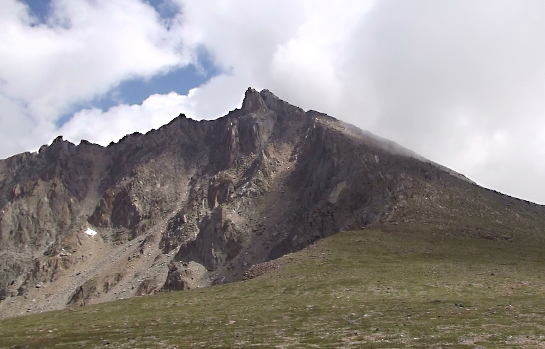 The climb from Lawn Lake to either Crystal Lake or the Saddle is a lot of work. There are some rather steep sections, but being on the ridge of the Mummy Range provides some wonderful views of both sides. However, at the top we got distracted by a small bachelor herd of big horn sheep. Here are three of them charging each other on a small snow field. A fourth just lounged around above them and watched. We decided he was already set in his position in the herd and had nothing more to prove.