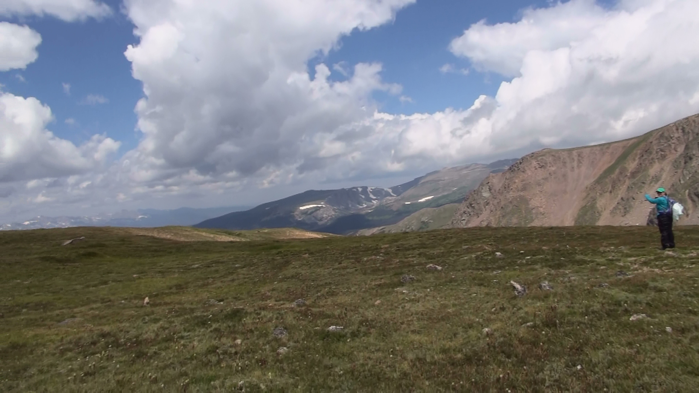 Again, the flowers on the way up to The Saddle just covered the slopes and offered blues, purples, yellows, whites, and reds for us to gaze over. It was really beautiful. I’ll have to look for some shots of those. The picture here is of Sherri getting my attention for the sheep and gives you an idea of just how far you can see.