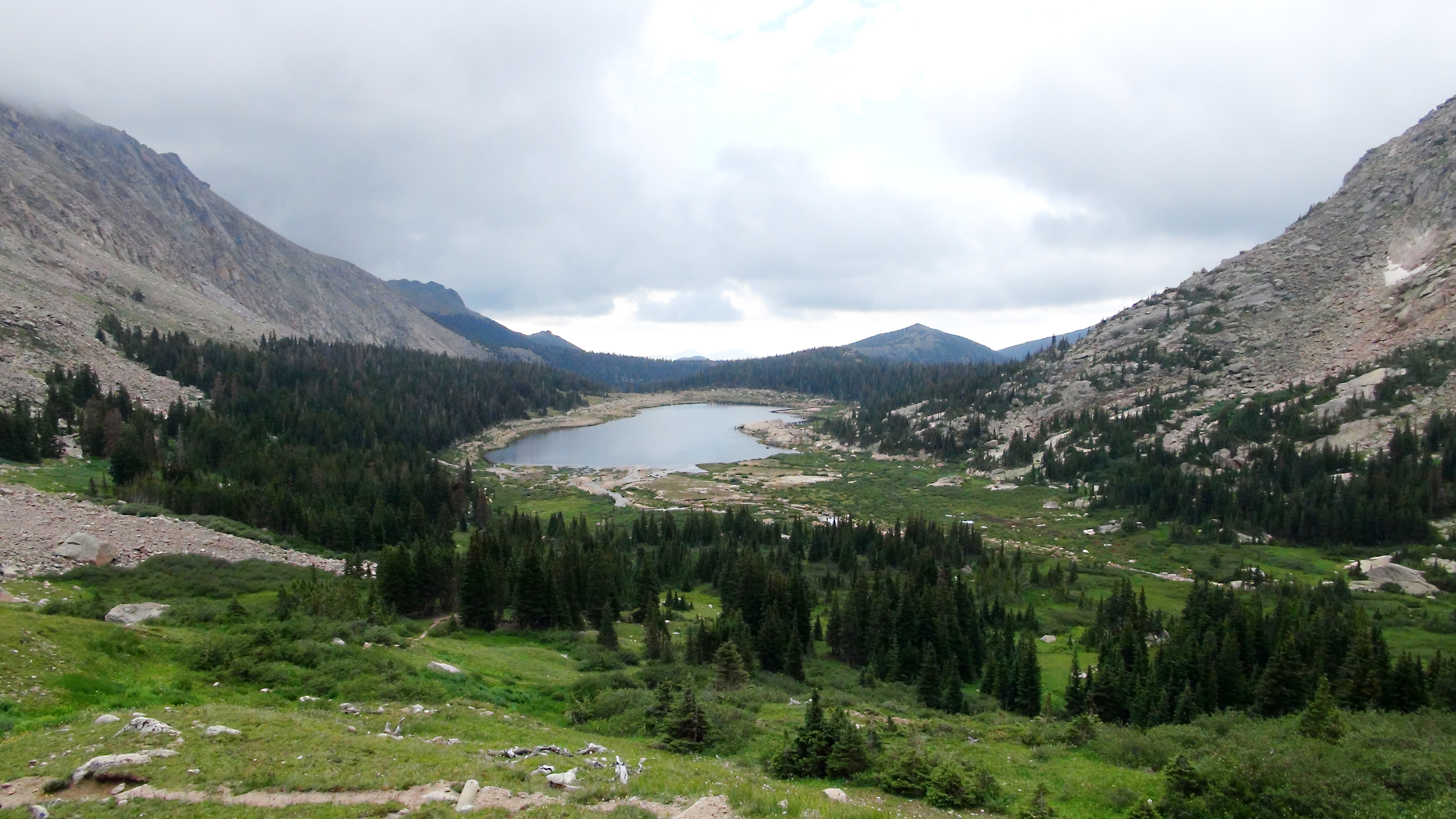 The fourth hike was to Thunder Pass, also on the west side. The route through Lulu City was about 14.5 miles round-trip. That trail, the thunderstorm, and crossing a wet log over a rain swollen river will get its own post. However, the initial picture in this post is from Thunder Pass. It was a very good hike and great to see Michigan Lake and the other side of the ridge.