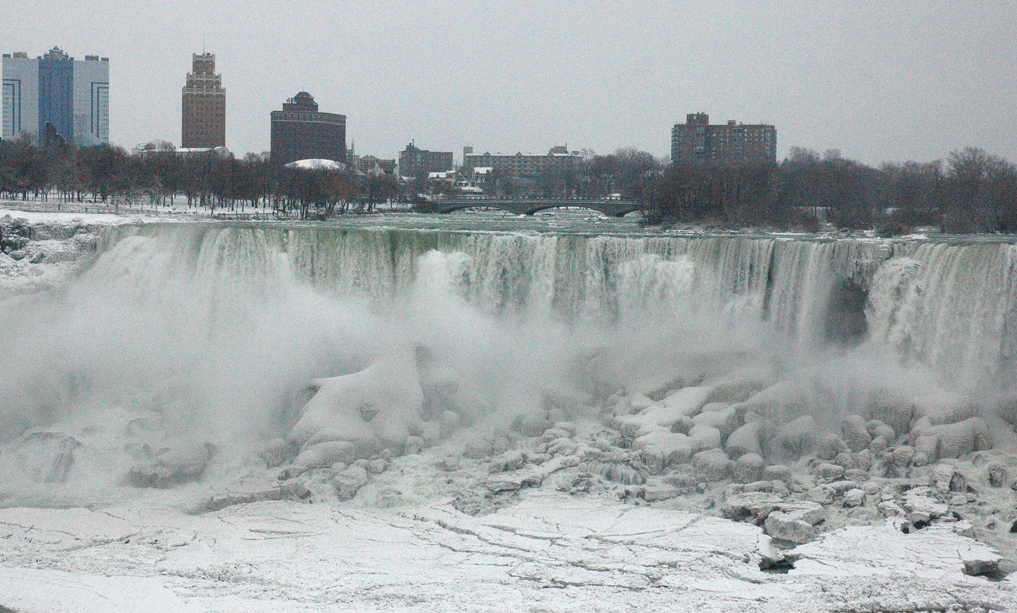 This day the falls were frozen over and while we could see a trickle of water running under parts of the ice, the surface was solid. However, the falls offered some protection from the wind and snow had piled up in places. It was in this snow-covered area where I learned a valuable lesson when it came to snow, ice, and moving water. As well as one about remembering where the sandy edge of the pool actually ended.