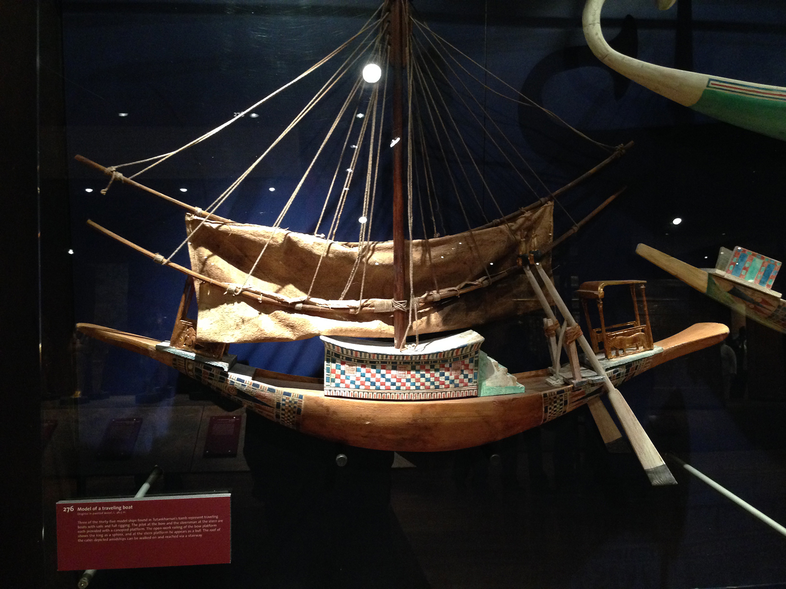 Numerous objects were included in Tut’s wraps, all with the intent to protect the pharaoh in the afterlife. The objects in the collection range from an iron knife, to chariots, to models of ships, jewelery, and statues of gods and the pharaoh. In some cases, the originals have now been damaged and the reproductions allow you to see what they originally looked like.