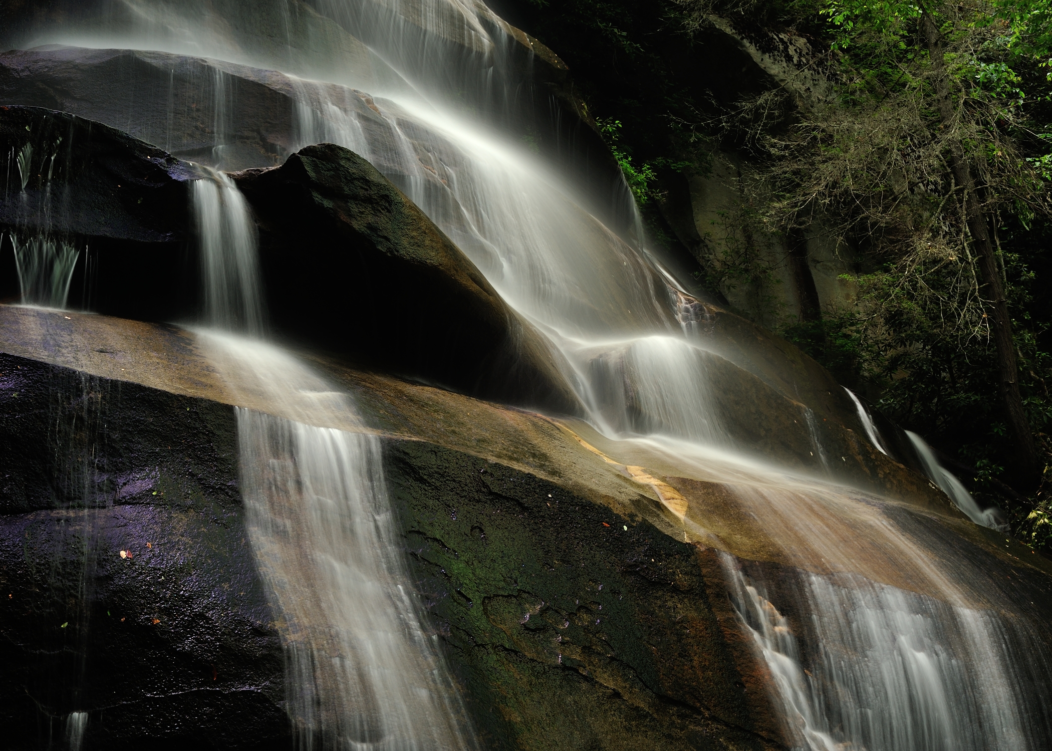The image of the falls above and to the right was taken while we were doing a pair of trail in Pisgah National Forest: Slick Rock Falls and Daniel Ridge Loop. It was one of our shorter days hiking, but the trails were enjoyable.