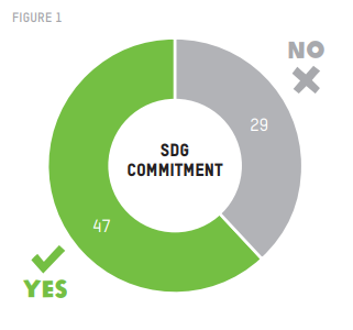 So we took a look at public information on the SDG engagements of 76 of the world’s largest companies across six general themes: 1) their commitment, 2) how they prioritize areas of SDG engagement, 3) their level of integration of the SDG into business strategies, 4) the level of ambitions of SDG actions and targets, 5) the degree of linkage between a company’s SDG engagements and its commitment to respect human rights and gender equality, and 6) the level of transparency and quality of SDG reporting practices.