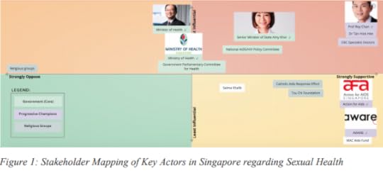 Thus, I will focus on influencing Prof Roy Chan to support and propose this national policy change. Together with the other DSC specialist doctors, he will be well-suited to convey the message to the Ministry of Health (MOH), given his influence in the government and his progressive stance towards sexual health. I will also reach out to Senior Minister of State (SMS) Amy Khor, because she frequently speaks out about HIV/AIDS and is the Chairman of the National AIDS/HIV Policy Committee. This is in contrast to the Minister of Health Gan Kim Yong, who has been relatively silent on such issues.