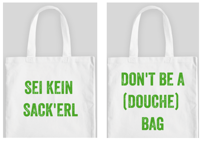 Teresa Schwarz came up with the memorable title ‘Don’t be a (douche) Bag’ for a campaign to ban plastic bags in Austria. A central piece of her campaign was to increase public awareness and political pressure by capitalizing on Austrians’ sense of humour and love of free tote bags, which combined make up the perfect tool for the movement. Reusable bags with the phrase “Sei kein Sack’erl” (“Don’t be a (douche)bag”) can generate attention, visualize public support and possibly reach unaware consumers. Sympathizing businesses can add the slogan to their reusable bags to spread the movement. A game can be created that encourages people to photobomb plastic bag users with their “Sei kein Sack’erl” bags and post them online; special points are given for catching politicians. This could be a fun way to demonstrate the silliness of using plastic bags while simultaneously shaming retailers still providing them and engaging the public without generating any additional costs.