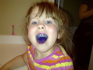 I was loading the dishwasher. Olivia was standing beside me, watching. I accidentally splashed her and she wiped her face and yelled, “Mommy, you got me with the wet water!”