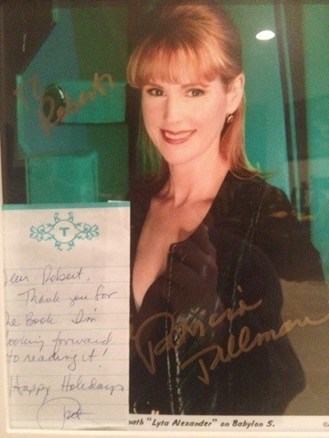 I had rather given up hope that the copy of Mind the Thorns that I sent to Patricia Tallman had arrived safely. But in just in time for the holidays this arrived and was added to my wall of inspiration: