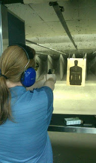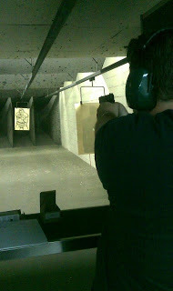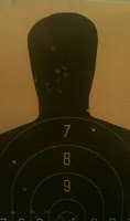 So I hopped on Steam chat, found my friend Derek and within a few minutes arranged to meet him the next morning at the gun range. There we talked about the guns Regan was likely to fire, I got a crash course in how the guns were set up, and what "features" each offered, and then we shredded some paper targets.I mostly fired the 9mm that he had brought. I have to say that the gun was remarkably easy to use and fit very comfortably into the hand. Just like the airsoft pistol I have, there was a button under the thumb that releases the magazine for quick reloading. It had surprisingly little kick to it and I was able to fire it fairly well simply resting it on my off hand rather than really bracing it hard.
