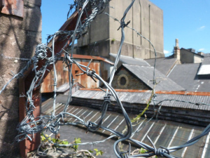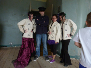 We cased the outside, lurking suspiciously by some large metal gates at the back of the theatre. Someone called Rich’s name – an ex colleague of his, Kae. We explained why we were acting like loitering bank robbers and she was really interested in the show, so we invited her to join the episode after she finished work. We then snuck up the fire escape to see if we could slip in to the theatre that way. The stench was gut wrenching. We were in the area with all the bins, including a large vat of chip fat, slowly cooking in the sun. Covering our noses, we fled the scene and headed into an army surplus store, to see if we could gather equipment for our dramatic entry. We pictured ourselves emerging from the store dressed in full camouflage gear with a bag full of weapons, equipment and steel toe cap boots. The owner told us we’d never get permission to get inside the theatre and said our best bet would be to go in ‘covertly.’ According to him, if a window was broken or open, it wouldn’t be classed as breaking and entering if we got inside. They even offered us props to use for filming and said if we were caught by the fire escape, to tell security he sent us round there to take his rubbish to the skips. Think we found ourselves an accomplice.