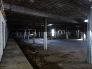 After returning to Rich’s to regroup, we met up with Kae to rescue the episode with our last planned location. The demolished shopping precinct. We strolled along the pavement then one by one, slipped through a small gap in the big boards blocking the area off from the peasants. We disappeared down a staircase in the ground and found ourselves in the basement of a gaming shop. Gingerly treading across the broken phone fronts and soggy packaging, the two of us crawled through a gap in the wall and found ourselves in an underground delivery car park. We explored the darkened openings, the rest of the crew mysteriously vanishing. After five minutes, we heard someone approaching. Wondering if Michael Jackson had risen from the dead with a gang of badass 80′s punks to enlist us in a dance off of Bad, we limbered up. Turned out it was our crew entering through a different way, so ducked into a doorway. When they were close, we jumped out on them. Rich said he knew we were hiding but there was nothing they could do about it. The car park was wonderfully dark and creepy, the smell of damp rank as we investigated the rubble strewn stairways in the shops basements. If ever there was a suitable location for a horror film, this was it.