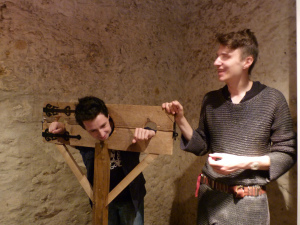 We were taken up the Saxon tower, where a volunteer was required to go in the stocks. He chose Ryan, much to our delight. Finally that scurvy bilge rat was where he belonged.