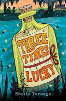 I recommend this book to kids ages 10 and up. If you like trying to figure out mysteries than this is a story you will certainly enjoy. I think Mo is a girl with a lot of spirit and voice. I found her town fascinating because everyone cares so much about each other and is involved in each other’s lives. So different from where I live! I like that Mo stands up for herself when her arch enemy tries to put her down. She is also a very creative problem solver and thinks on her feet. I think the idea of sending a message in a bottle is so exciting and I loved reading Mo’s letters. Both Dale and Mo seem like kids I would be friends with because they formed their own detective agency (awesome) and are trying to solve crimes. They are also nice and look out for others. Their strong friendship is inspiring. This is a quirky book with stand out characters that you will hear long after you turn the last page. There is a little violence in the book, but it seemed to be included in a way that wasn’t shocking or worrisome. If anything it made the book seem more realistic. I enjoyed the mystery in this book and was proud of myself for solving part of the mystery before it was revealed! If you are looking for a character who is spunky and different, then curl up with Mo and see if you can solve the case along with her!Has anyone else read Three Times Lucky? Or another book by Sheila Turnage? We would love to hear your thoughts!