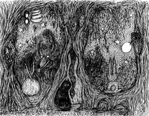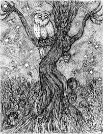 Consider me Cornerstone Owl. I may or may not care. Stay or don't, the choice is yours. I've a tale to tell. But only if the rain persists. It's the chill in the sweeping wind that stiffens the vine, that's the buzz around here. Listen. Creaking bones of bark and burrowing bug, more or less paper flesh, or so the story goes.