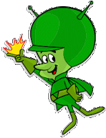 and we all like Gazoo. He is a little, green man, who was exiled from his home planet for building a weapon that could destroy the universe. Gazoo claims that it was no big deal and, of course, he had no intentions of using it. Still, he's stuck here on Earth with Fred and Barney, plotting to pompously add a little excitement into their prehistoric lives. : ) ~ F